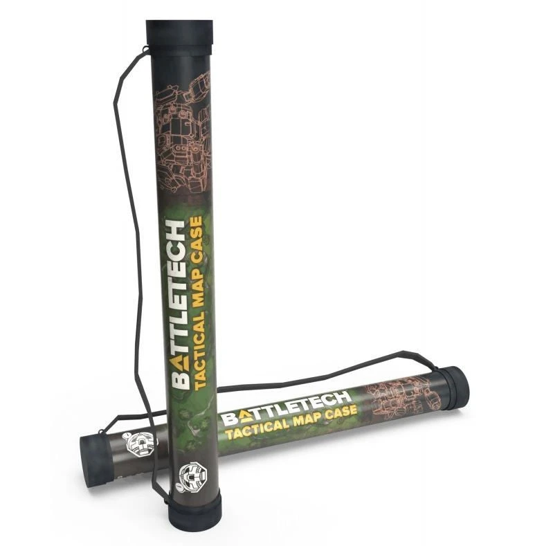 The Tactical Map Case is made of ABS plastic, branded for the BattleTech IP, and measures 27″ x 3.75″. It holds two rolled neoprene maps for a full battlefield size of 44″ x 34″. The case also includes a cylinder case for holding dice and a few miniatures as well, in case you want a full grab-and-go battle.