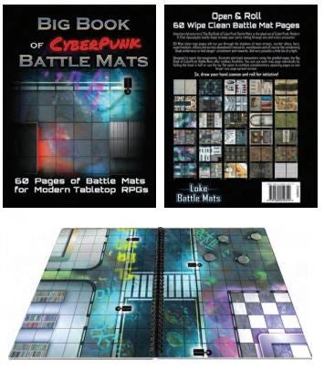 Attention Adventurers! The Big Book of CyberPunk Battle Mats is the ideal set of CyberPunk, Modern & Post Apocalyptic battle maps to keep your party rolling through any and every encounter. Through the shadows of neon streets, murder alleys, bars, supermarkets, offices and across abandoned trainyards, warehouses and of course the unrelenting bleak wilderness to find danger, excitement and reward. And very possibly a little bit of a fi ght.
