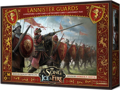 Of all the Great Houses of Westeros, there is none more wealthy and ready for war than the Lannisters. Wars are fought with money, and the ability to arm troops with the finest steel and equip them with armor to keep them alive and hacking at the enemy goes a long way over the course of a battle. The A Song of Ice & Fire: Tabletop Miniatures Game ��� Lannister Guards unit boxes come with twelve Lannister guard figures, one Guard Captain unit attachment, a movement tray, and all associated unit cards. These soldiers are not the fastest, or even the strongest in the war. What they do have is an incredible level of defense, giving them the ability to wear their opponents down. Wars are won by those with the will to continue fig