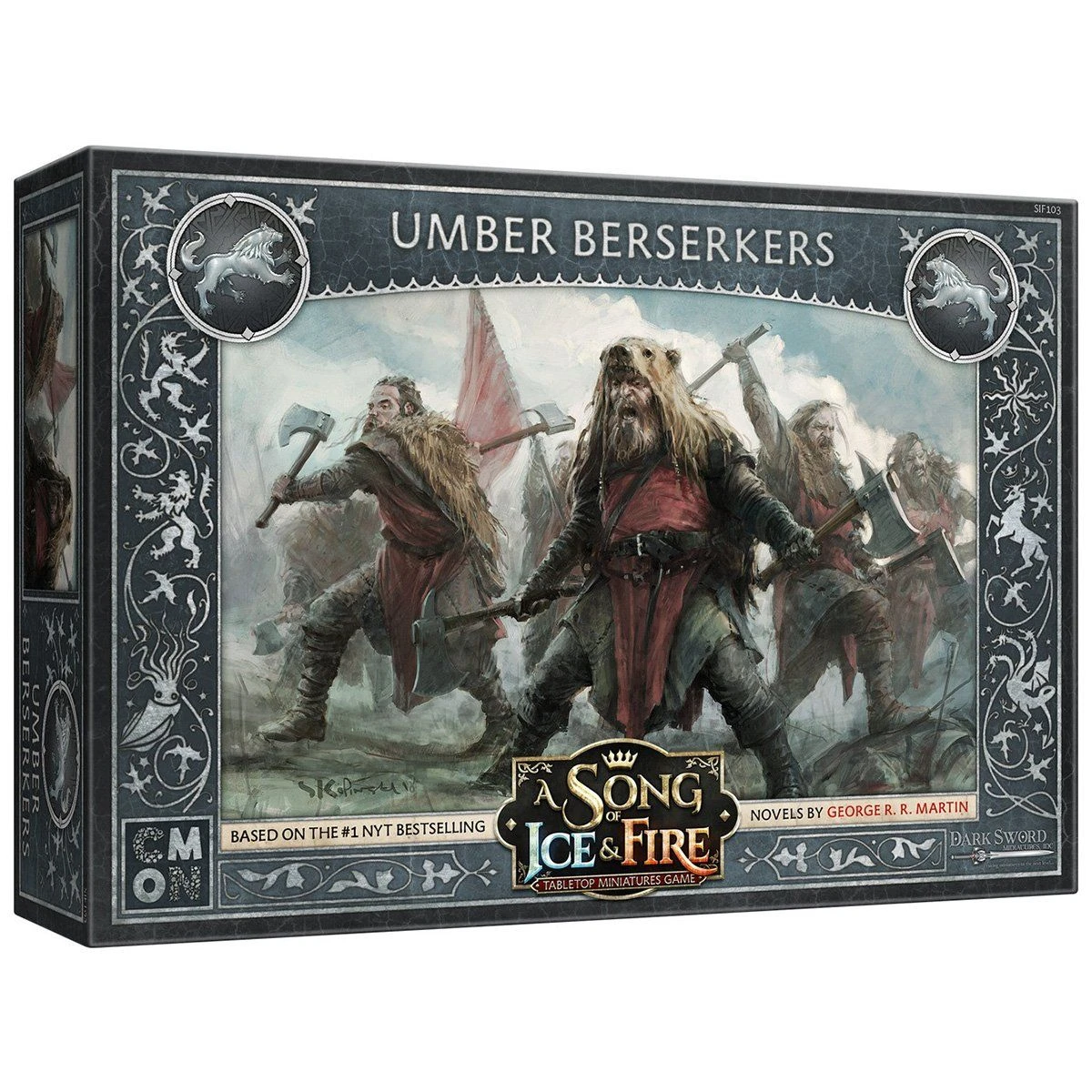 The Umber Berserkers Unit Box for the A Song of Ice and Fire: Tabletop Miniatures Game gives Stark commanders a new unit to add to their ranks. Melee specialists, theyre one of the few units in the game that gain attack dice as they take casualties. And enemies certainly dont want to be hit, as the units Sundering ability means Defense Saves are harder to pass. Adding in the Umber Champion only increases their effe