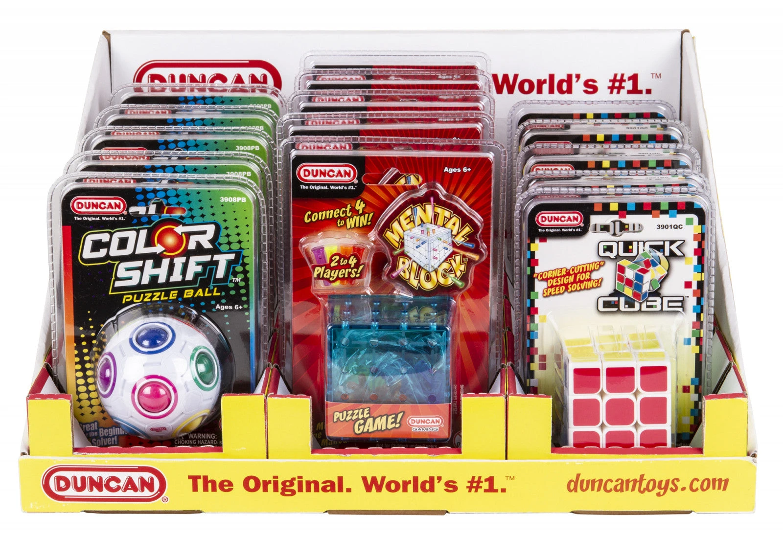 Challenge your mental skills while having loads of fun! Duncan’s Color Shift Puzzle ball can be solved by matching all of the colored balls with their corresponding colored rings. There are 12 holes with only 11 filled with a colored ball. Utilize the empty hole to maneuver balls around to find their matching hole. Once all balls match the puzzle is solved! How fast can you do it?