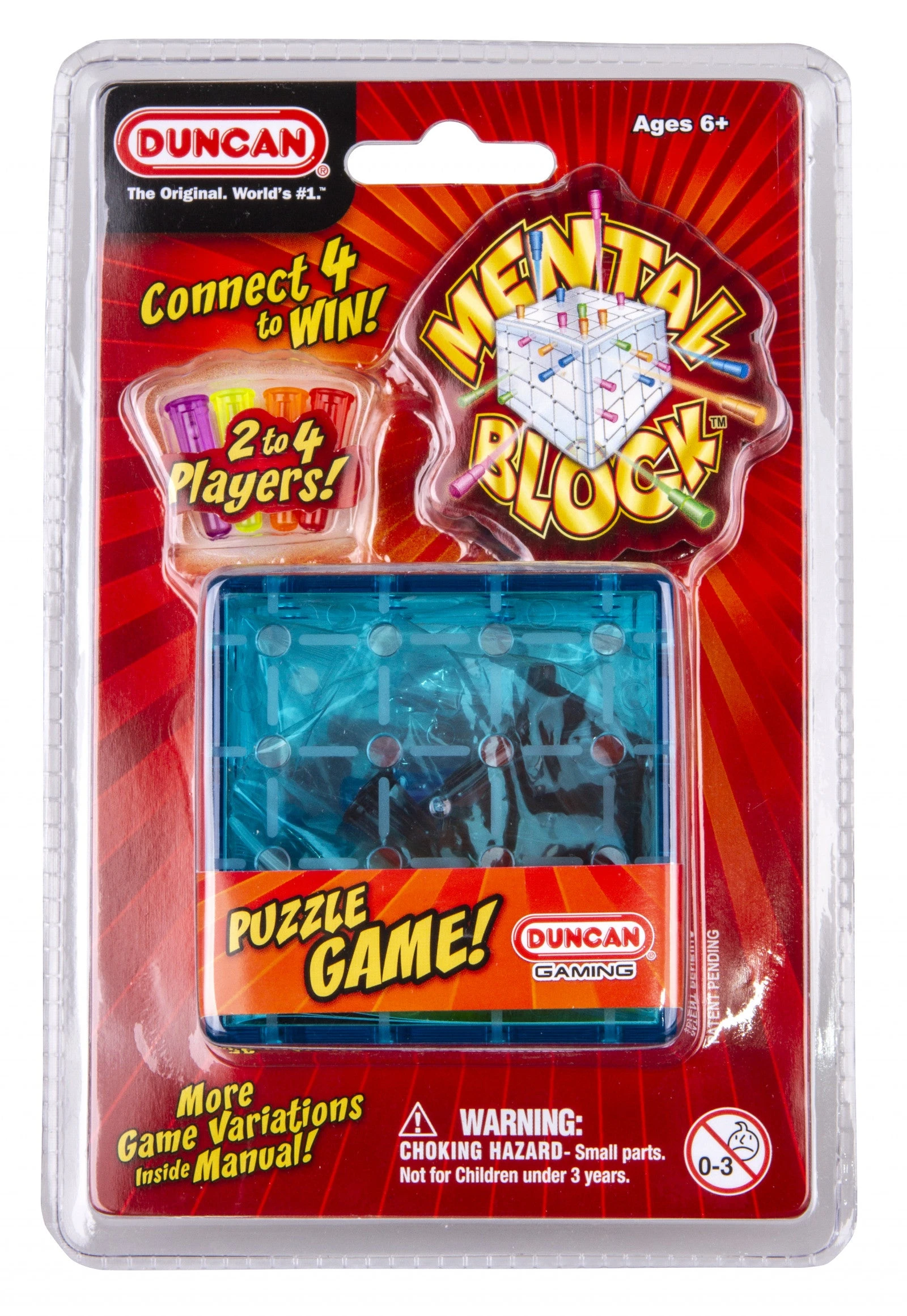 All of us suffer from occasional mental block but Duncan has turned on its edge with the new Mental Block brain twister.? With alternating turns simply be the first player to connect 4 pegs in a row and you win! Fun for 2 to 4 players easy to learn but a challenge to win! Over walls and around corners; use all 6 sides. More fun than 2-dimensional games Great for kids of all ages Multiple game variations