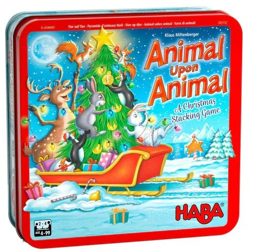 The animals are climbing all over each other to form an ever-taller Christmas pyramid. But which one will make it to the top? The players decide by carefully balancing squirrels, snow bunnies, penguins and reindeer on stars, fir trees, sleds, and even on top of each other. The first player to place all of his or her figures safely on the pyramid wins this wobbly Christmas stacking game.