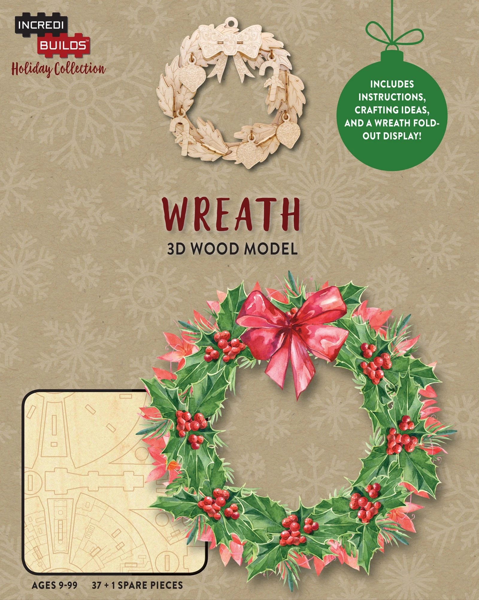 This decorative wreath is the perfect way to brighten up this holiday season. With this exciting IncrediBuildsTM wood model set, take the chance to explore your creativity and craft this unique, displayable wreath! The wood model is easy to assemble and snaps together to form a dynamic 3D model. No glue or tools needed! Includes: Laser-cut, FSC��-certified wood sheet with easy-to-assemble pieces, step-by-step instructions, and coloring and crafting ideas. Made from wood rather than metal or plastic, these models can be colored or painted in countless ways. IncrediBuildsTM are made from eco-friendly, FSC��-certified wood. No glue or tools required. Each puzzle comes with easily detachable and interlocking parts. All sets include clear and easy-to-follow directions, enabling a high-quality crafting experience! Also includes a Wreath illustrated holiday scene to display your creation. 1x instruction sheet with crafting ideas, 1x fold-out holiday background scene for display
