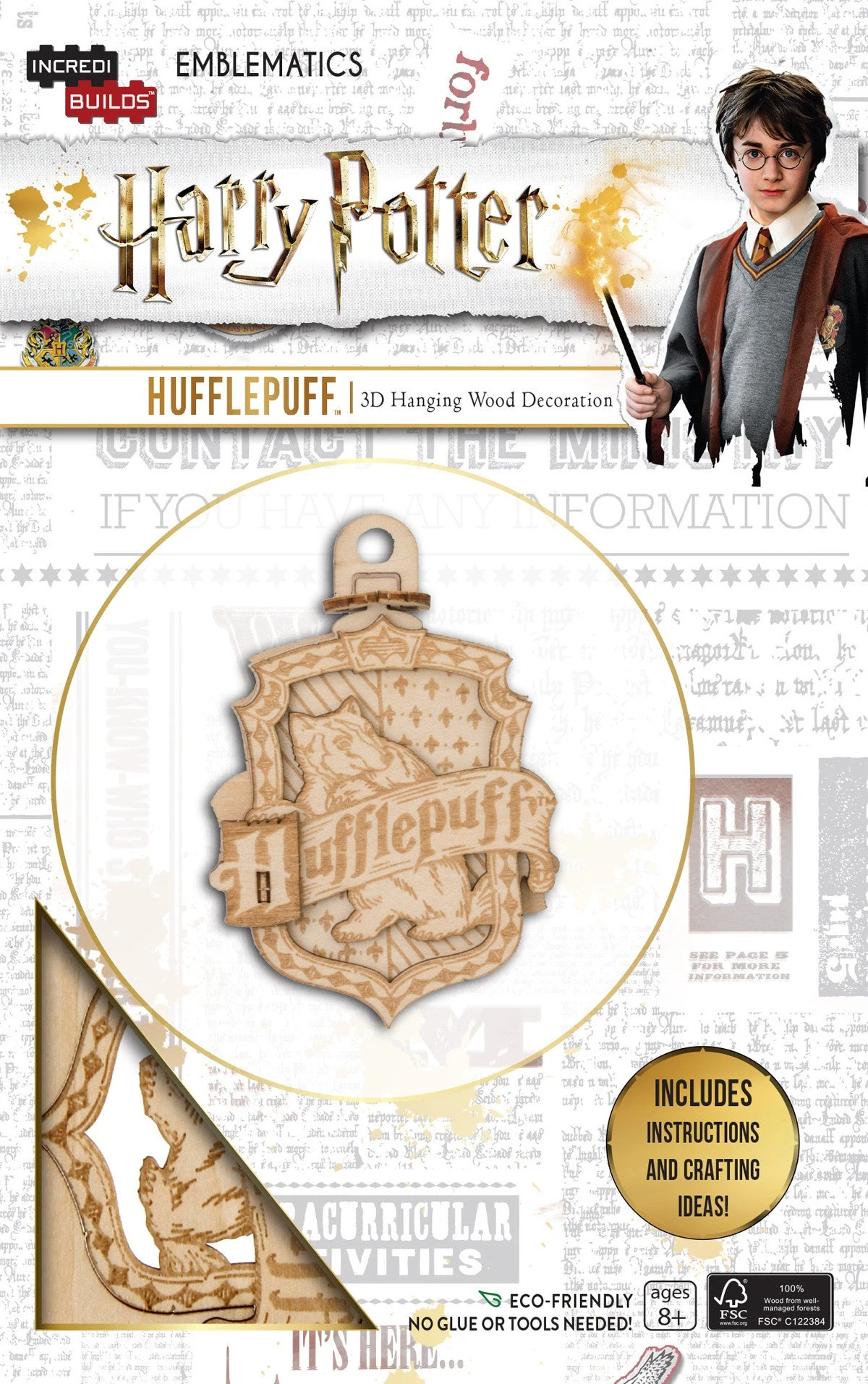 Build your very own Hufflepuff house crest! It���s time to show off that Hufflepuff pride with this build-it-yourself hanging model of the Hufflepuff crest. Made from natural wood, the model can be painted, colored, and customized to create a truly unique piece of Harry Potter art. The pieces are easy to assemble and snap together to form a dynamic 3D model.