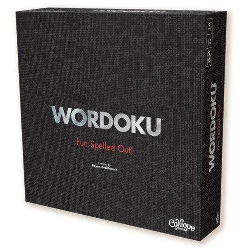 Wordoku is a combination crossword-sudoku word game for one to six players. In the game, players race to create words and earn points using wooden letter tiles on a 4×4 grid, while skillfully incorporating all the tile symbols to double word values!